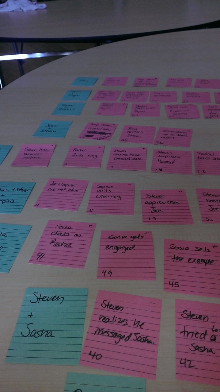 Besides being a consultant, Ryan is a motivational speaker. But keeping in harmony with false relationships, his message is hardly motivational – it’s about abandoning attachment to things and people. He practices this himself. Ryan has extended family, but he’s been distant from them. This is represented by a cardboard cutout of his soon to be married sister and her fiancé, which he is to take photos of on his travels. He handles the cardboard family with more care than the actual humans.